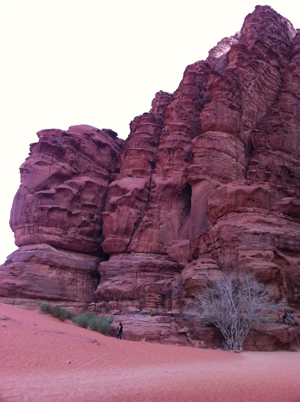 We drove out to the Wadi Rum desert. Amd rented a guide with a 4wd truck amd motored out In the desert for 4 hours. Saw some petroglyphs, hiked some slot canyons, saw a few arch bridges, some red sand dunes, alot of camels amd goats, pretty flowers now blooming, amd hiked up to some scenic overlooks. It wad HOT!! close to 100. Amd dry. But oh so pretty.