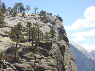 Yosemite Falls has its own rainbows from up here.. And at the top of the screen in the green you can see the trail we took to get up here..